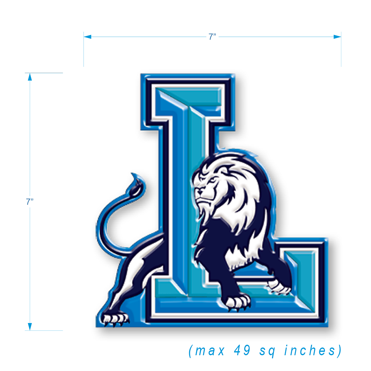 Max size of 7" to a side (49 sq inches)