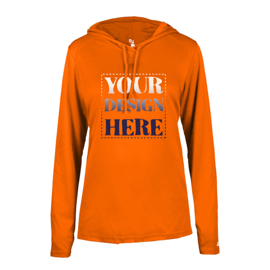 The Badger Sport B-Core Long Sleeve Ladies’ Hoodie (Item #416500) is the ultimate blend of comfort and performance for active women. Made from 100% polyester performance fabric, this hoodie delivers superior moisture-wicking and odor resistance to keep you fresh and dry. Its ladies’ fit, overlapping hood, and sport paneled shoulders ensure unrestricted movement, while the tag-free label adds irritation-free comfort. Perfect for custom decoration, this hoodie is ideal for team gear, fitness apparel, or stylish everyday wear. Durable, lightweight, and designed for performance, it’s a must-have for personalized activewear.