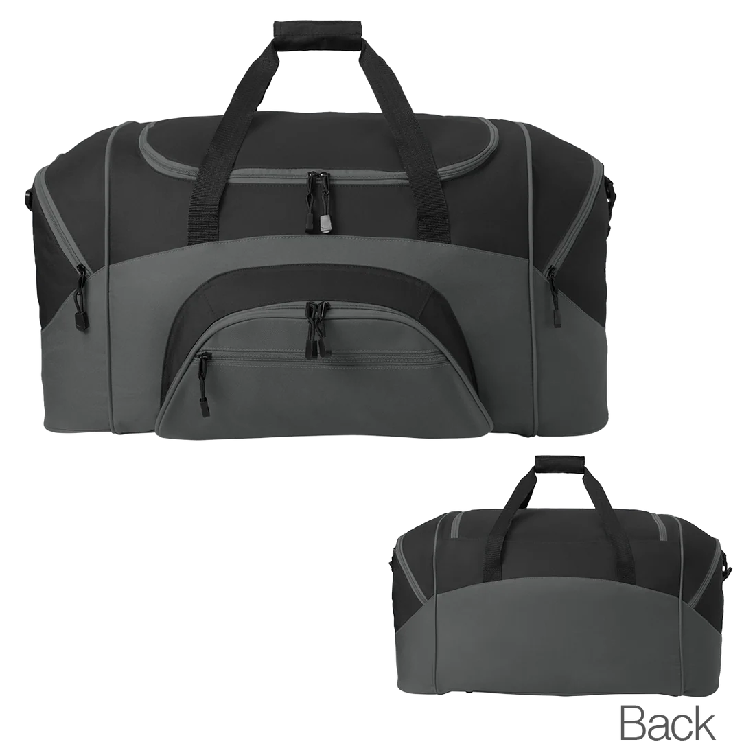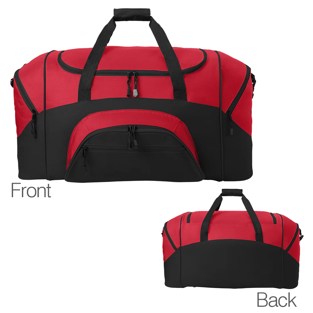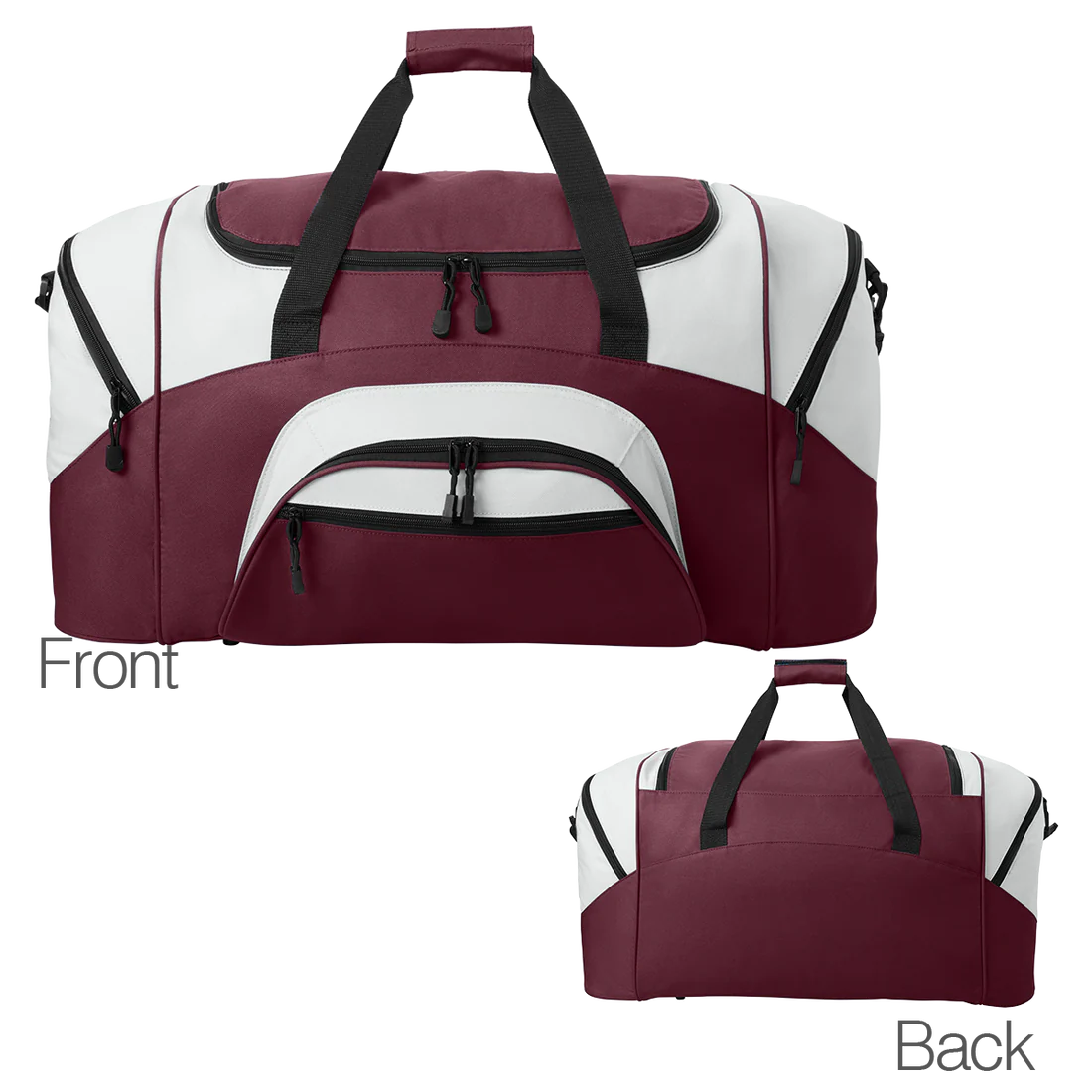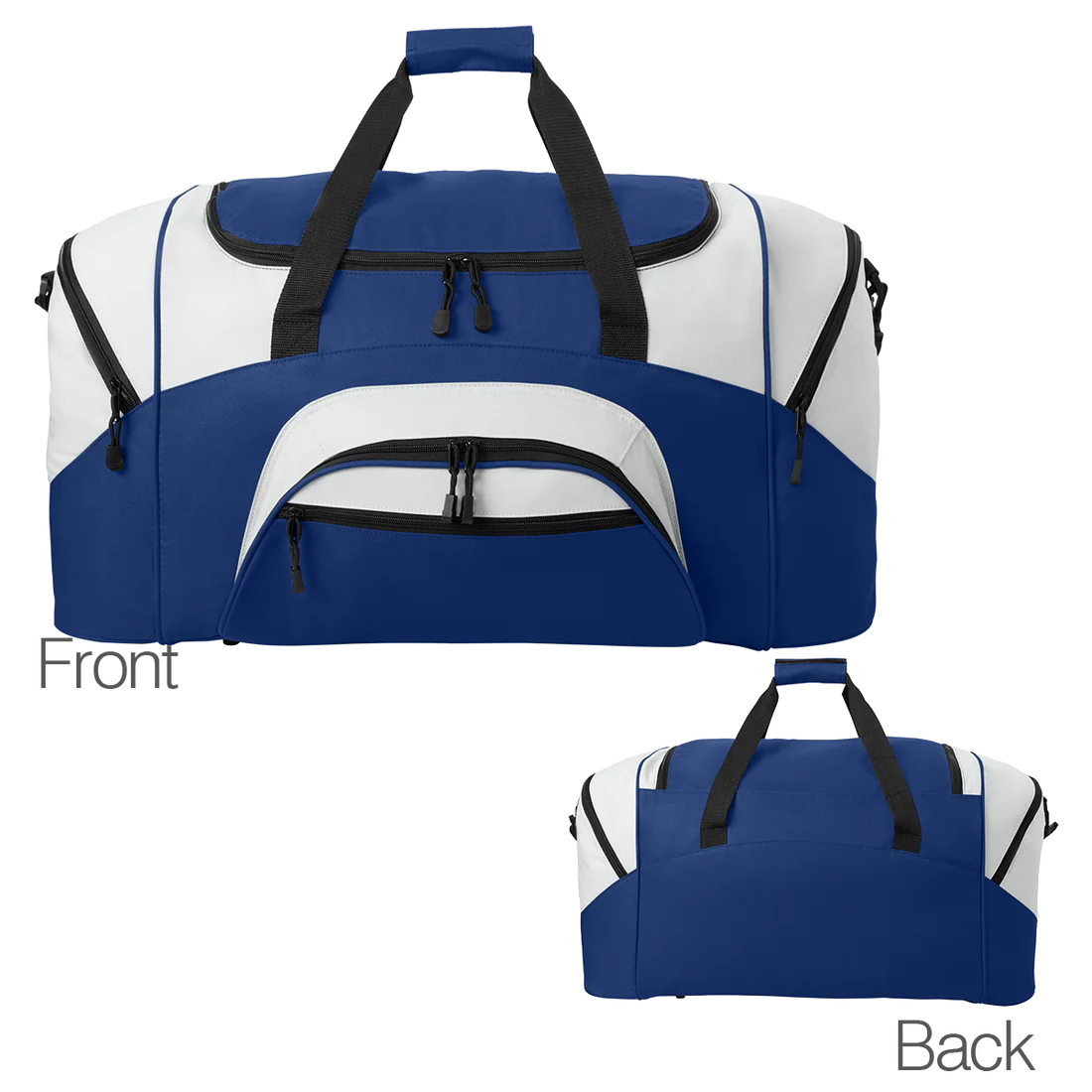 Pack it up and roll out with the Port Authority® Colorblock Duffel. Bold color panels and durable construction make this bag a go-to for players and coaches alike. Plenty of room for gear, plus full-color customization for a look that reps your team hard.