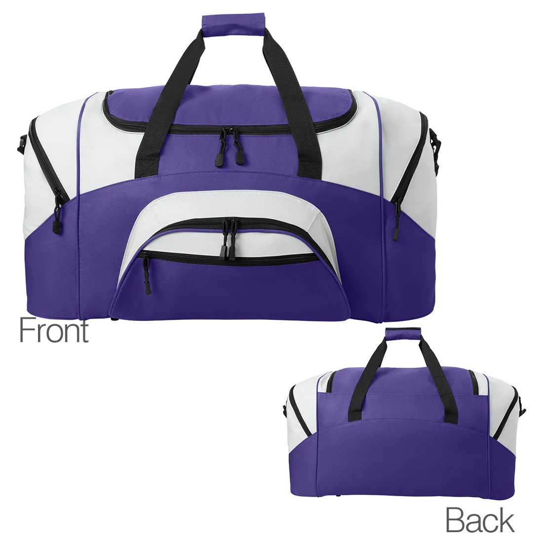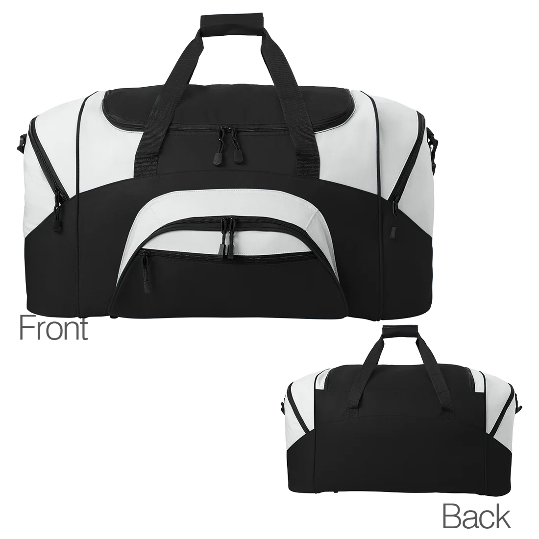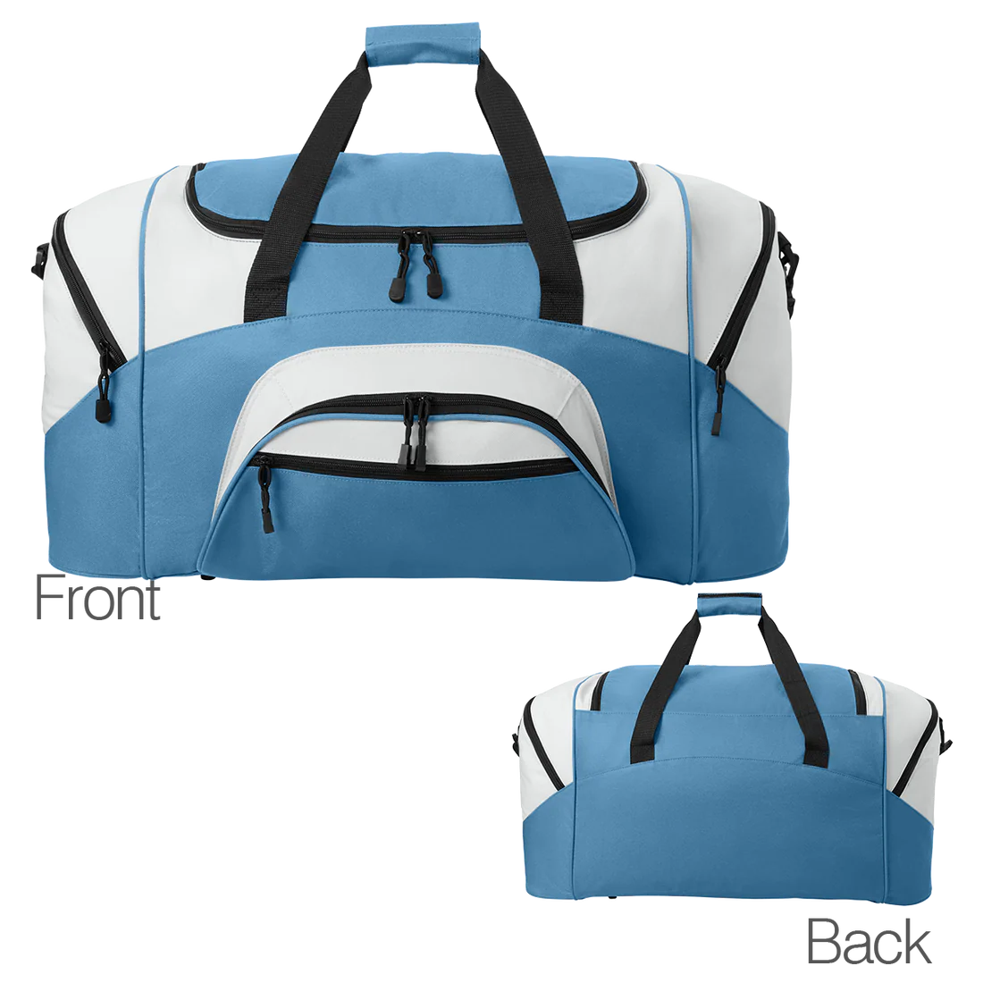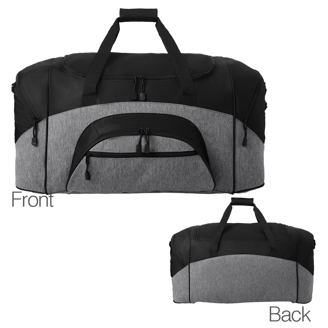 Pack it up and roll out with the Port Authority® Colorblock Duffel. Bold color panels and durable construction make this bag a go-to for players and coaches alike. Plenty of room for gear, plus full-color customization for a look that reps your team hard.
