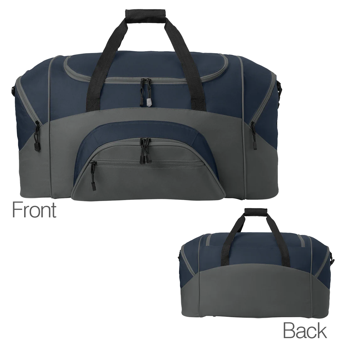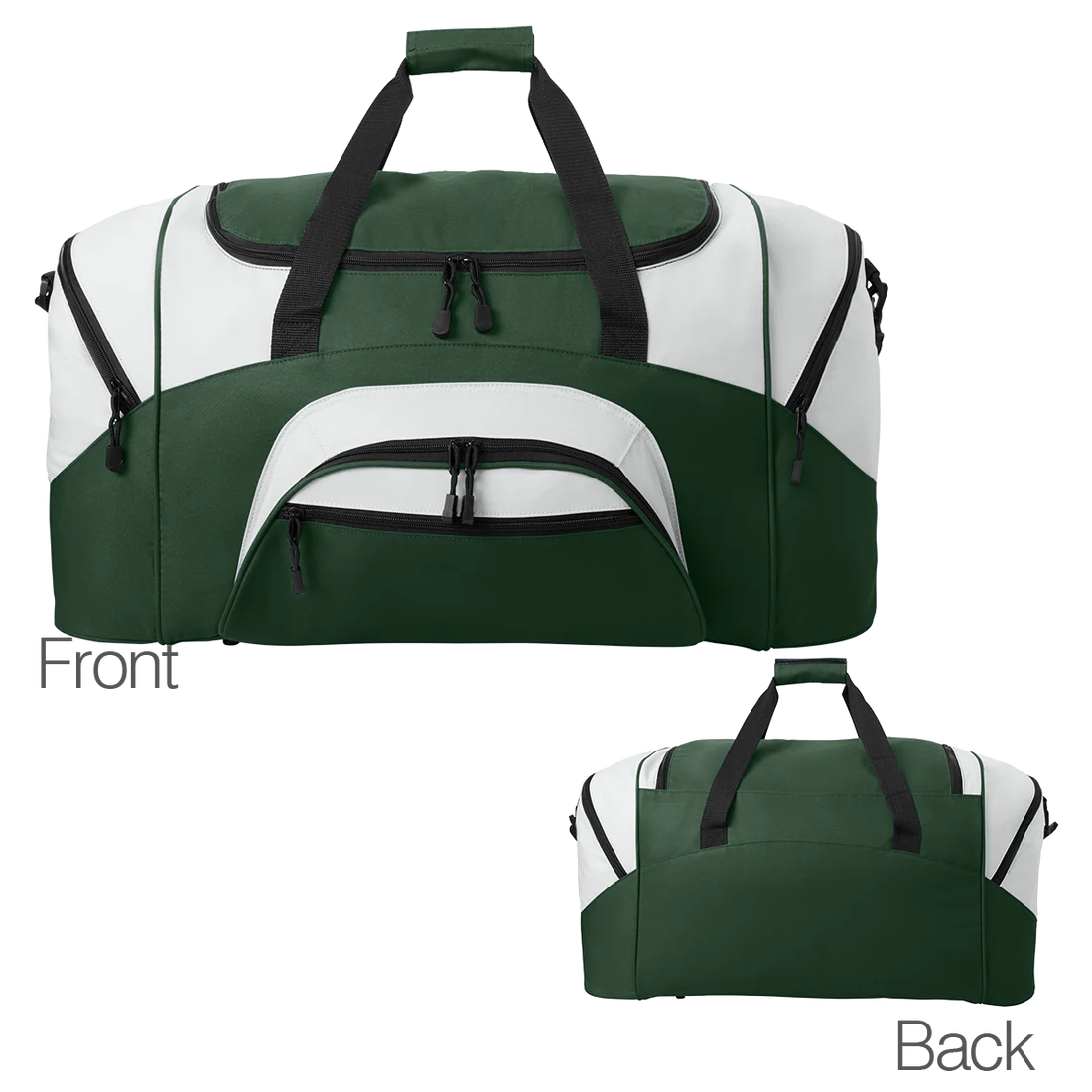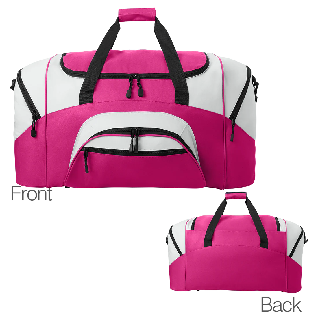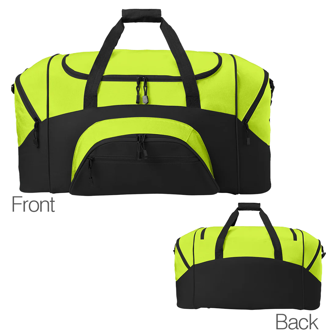 Pack it up and roll out with the Port Authority® Colorblock Duffel. Bold color panels and durable construction make this bag a go-to for players and coaches alike. Plenty of room for gear, plus full-color customization for a look that reps your team hard.