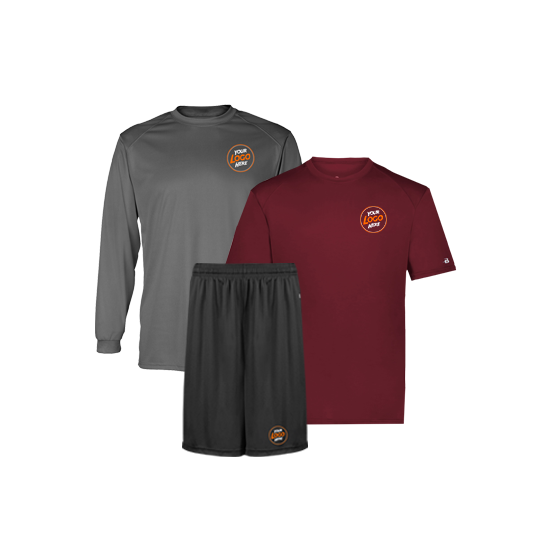 This 3-piece Coaches Performance Pack includes any color tee, long sleeve tee, and shorts and either a 1-color imprint or 2-color imprint on all items.