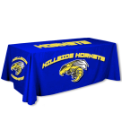 Table Throws add a classy look to graduation ceremonies, sporting events, fundraisers, team sign-ups and so much more. Our table throws are available in 6ft and 8ft and fit the two most popular standard table sizes. Custom printed edge-to-edge on premium fabric in your choice of brilliant colors, our custom throws are guaranteed to look great for years to come!